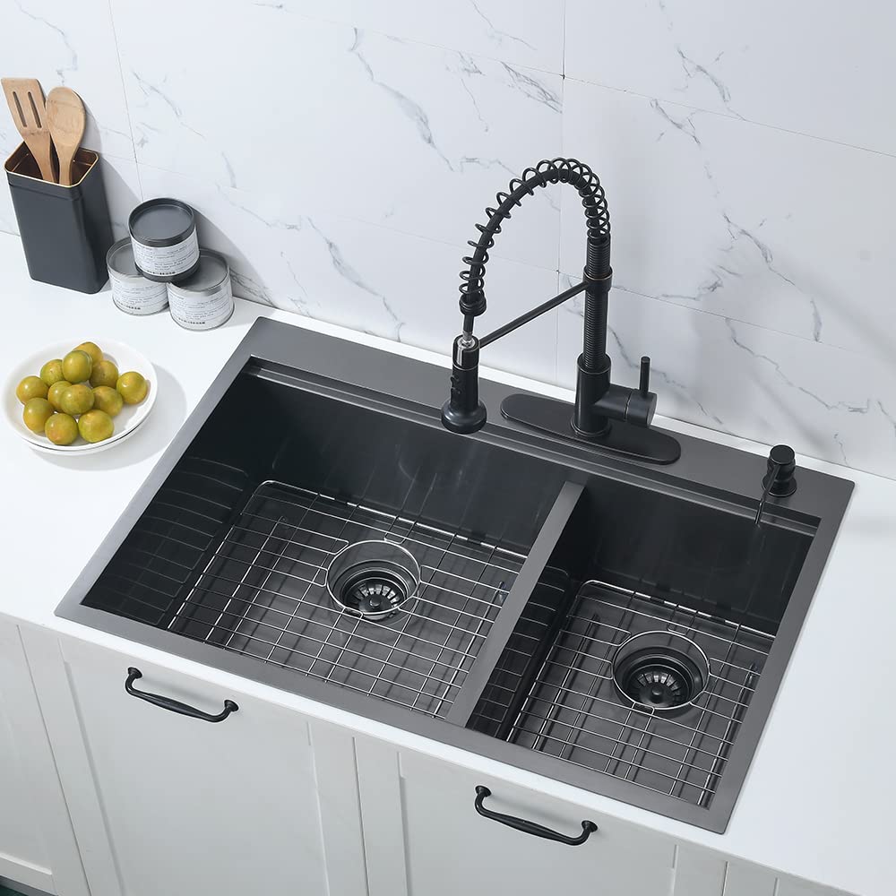 10 Inch 60/40 Workstation Ledge Double Bowl Gun Black Stainless Steel Topmount Kitchen Sink