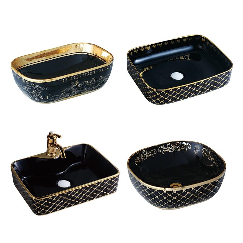 Basin New Flower Design Gold Sink Basin Sanitary Ware Bathroom Sink Gold Plated Washbasin Black Golden Color