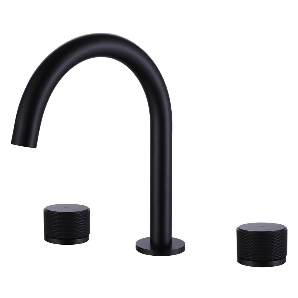 3 Hole Hot Cold Water Basin Tap Deck Mounted Matt Black Finish Brass 8” Widespread Dual Handle Hand Wash Faucet