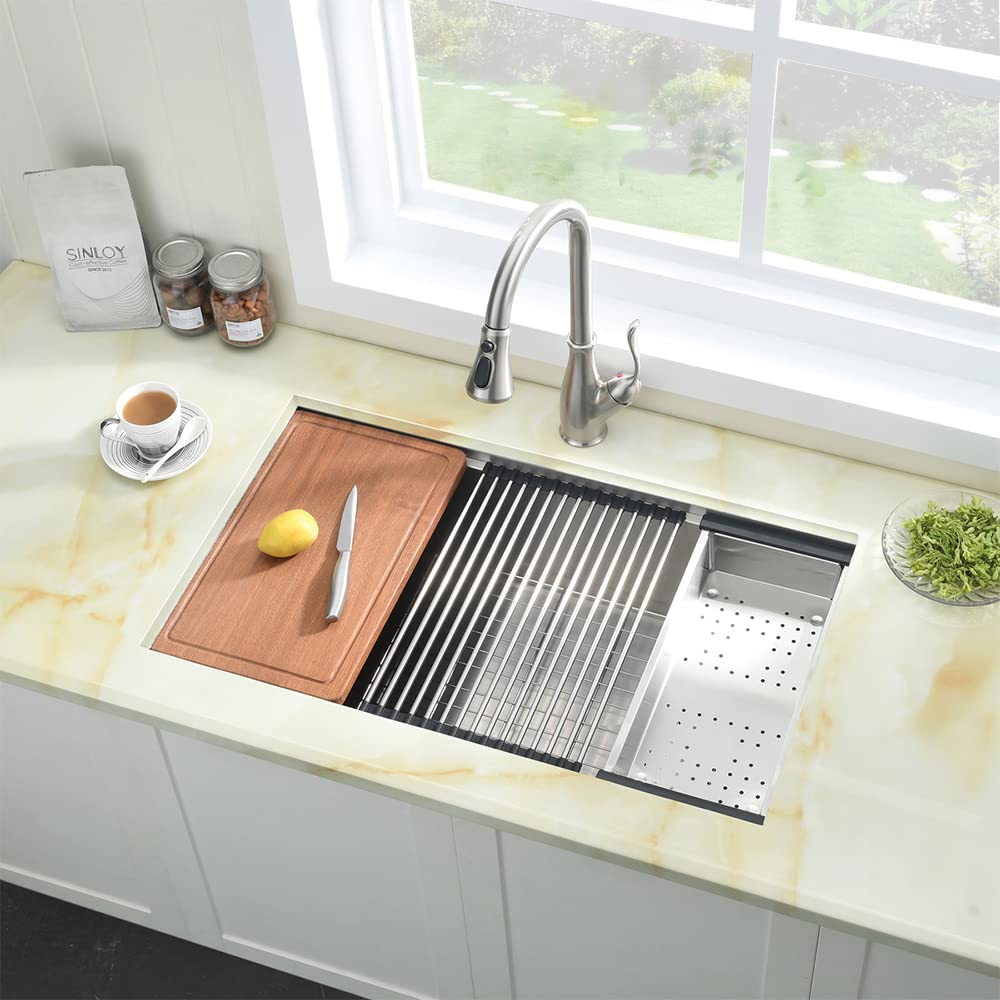 30 Inch Handmade Kitchen Sink 16 Gauge Undermount Single Bowl Sink with Right Hand Off Set Drain