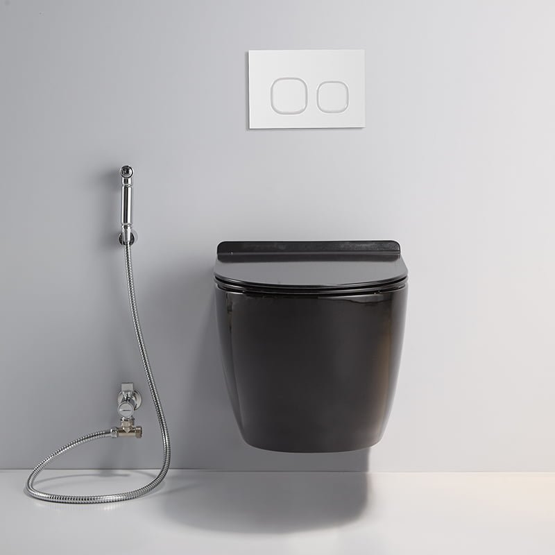 أدوات صحية للحمام مرحاض سيراميك أسود قطعة واحدة مرحاض معلق على الحائط