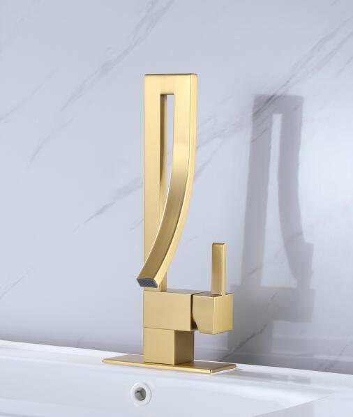 Brushed Gold Finish Brass Elephant Faucet Unique Deck Mounted Wash Basin Faucet