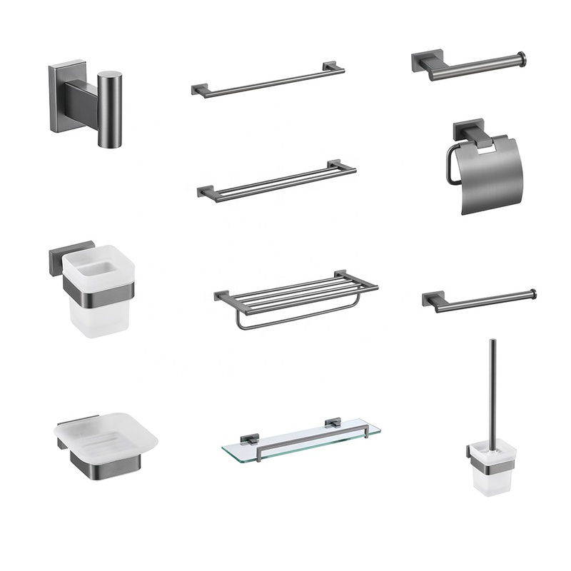 Hotel Gun Gray 304 Stainless Steel Bathroom Accessory Fittings and Bathroom Accessories Hardware Set