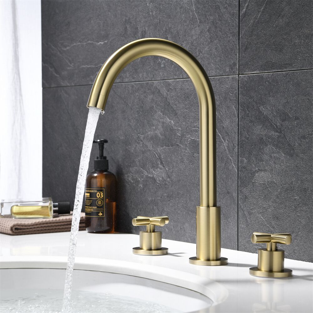 Luxurious CUPC 3 Hole Modern Style Brushed Gold Hot Sale Bathroom Ceramic Cartridge Brass Basin Faucet