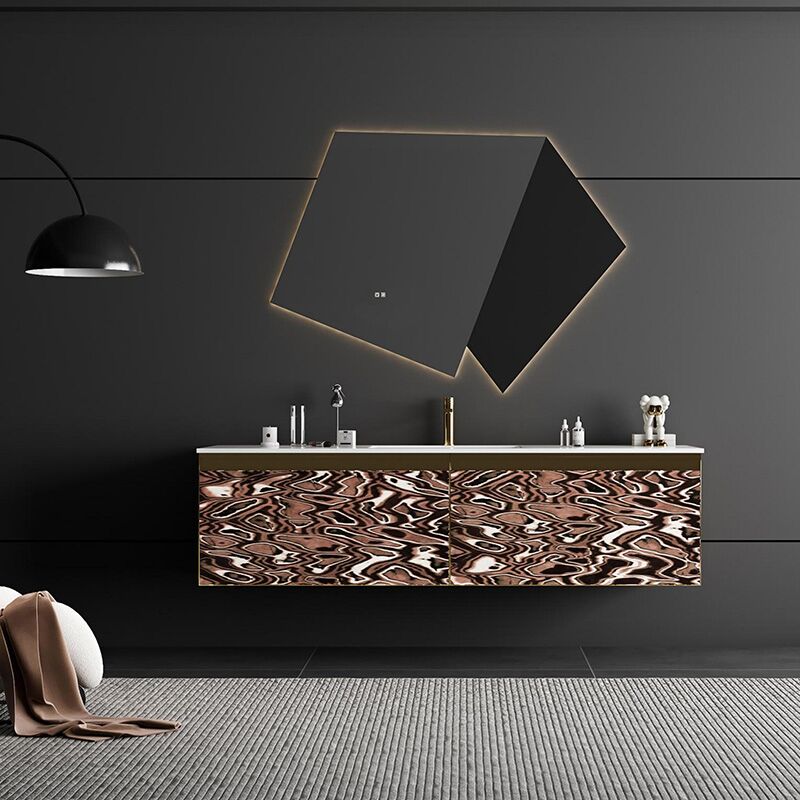 Luxury Wall Hung Sintered Stone Floating Double Sink Bathroom Vanity