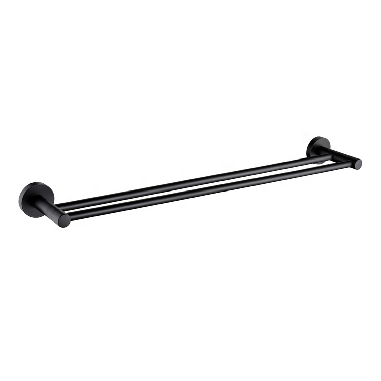 Matt Black 304 Stainless Steel Wall Mounted Round Double Towel Rail Shelf Holder Bar Hotel Bathroom Accessories