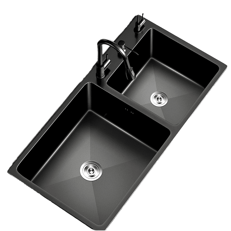 Modern Smart Stainless Steel Kitchen Sink Utility Nano Black Large Undermount Faucet Multi-Function Double Square Bowl 2 Holes