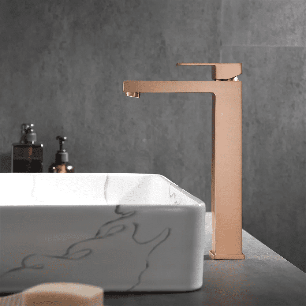 Wash Faucet Deck Mounted Single Hole Brushed Rose Gold Finish Hot Cold Water Tap Brass Single Handle Basin Mixer