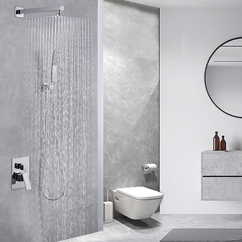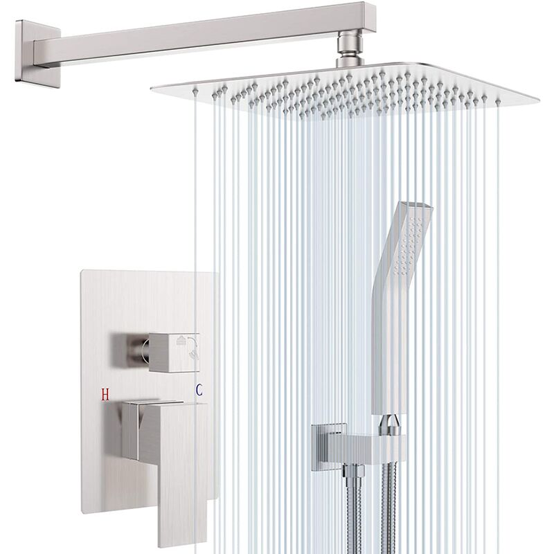 | Feature | Copper/304 stainless steel durability design Fully control the temperature Pressure hand shower and 304 stainless steel hose Concealed mixing valve brass combination Non-corrosion and anti-friction adjustable hand shower bracket Non-slip handle shower valve with built-in diverter for hot and cold water supply Adjustable water pressure device with a flow rate of 2 gallons per minute |