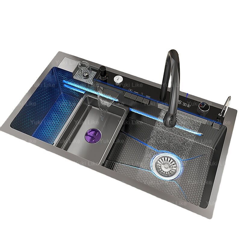 Black LED Digital Display Kitchen Sink 304 Stainless Steel Waterfall Sink with Faucet Set for Hotel Kitchen