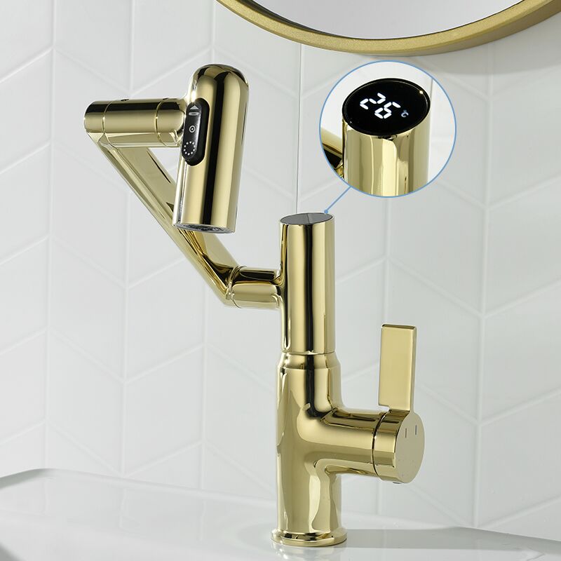 Brushed Gold Brass Wash Basin Faucet Mixer Tap Bathroom Sink Led Vanity Faucet