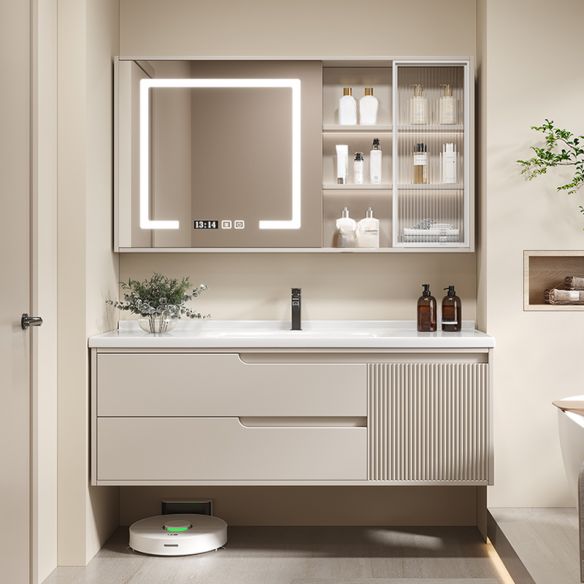 Cream Style Piano Lacquer Panel Ceramic Integrated Basin Master Bedroom Bathroom Cabinet