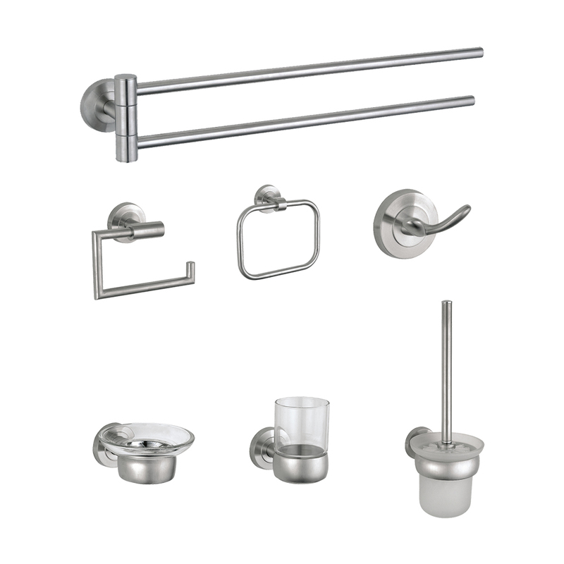 Brushed Luxury Round Washroom Decoration Accessories Hardware Set 304 Stainless Steel Bath Accessories Hotel Bathroom Set