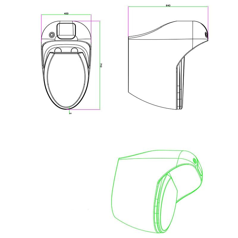 Vollständig glasierte Spülung, die eine superleise und kraftvolle Spülung ermöglicht – keine Verstopfungen, keine Lecks. Auslaufsicher. Hocheffiziente Doppelspülung 1,28 GPF/0,8 GPF. Das Wasser spritzt aus zwei kleinen Löchern, spült entlang der Innenwand einer gut gestalteten, länglichen Toilette und erzeugt einen Wirbel. Der Wirbel reinigt alle Ecken der Toilettenschüssel rundum und sorgt gleichzeitig für ein ruhigeres Leben.