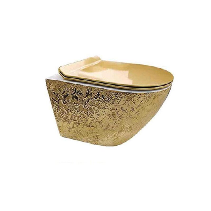 Badezimmer Galvanisierte Keramiktoilette Luxus-Toilette im europäischen Stil, verdeckte goldene Wandtoilette