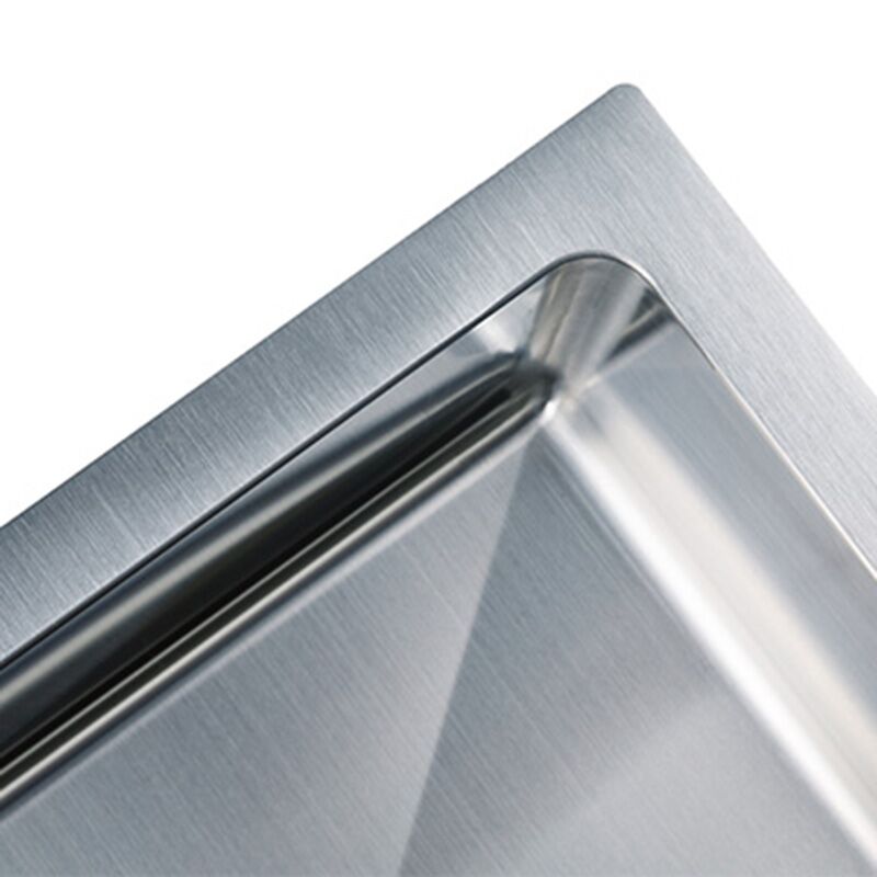 Entwickelt für vollständige Entleerung, mit einem sanft geneigten Boden, der stehendes Wasser in der Schüssel verhindert. Der optimierte Winkel verhindert, dass Glaswaren beim Einlegen in die Schüssel herunterfallen. Waschbecken Angereichertes Silber in der Beschichtung verhindert, dass sich saure Verunreinigungen aus Wasser und Luft in den Edelstahl einlagern. Unsere geheime Formel bringt die Waschbecken höchste Kratzfestigkeit und Oberflächenintegrität wie nie zuvor. Tiefe Einzelspüle zum Auffangen von Spritzern und für Ihre größten Töpfe und Geschirrstapel sowie Ihr größtes Küchengeschirr.