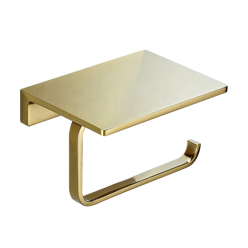 Luxury Bathroom Tissue Holder Gold Hotel Bathroom Toilet Roll Holder With Phone Shelf