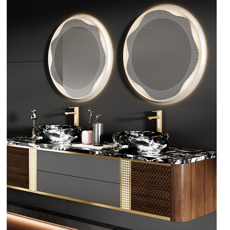 Luxury Solid Wood Cabinet Marble Countertop Ceramic Basin Large Storage Cabinet