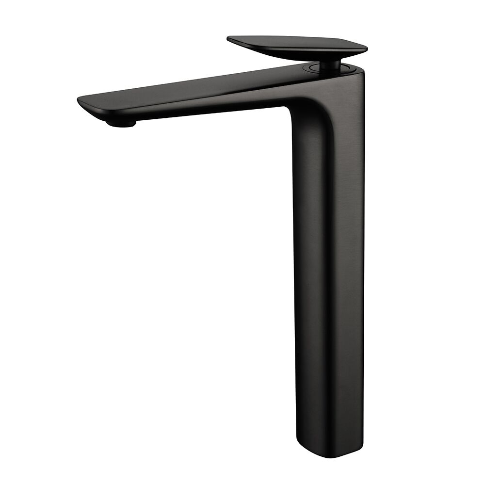 Deck Mounted Matt Black Finished Hot Cold Water Supply Tall Faucet Zinc Handle Brass Bathroom Sink Tap