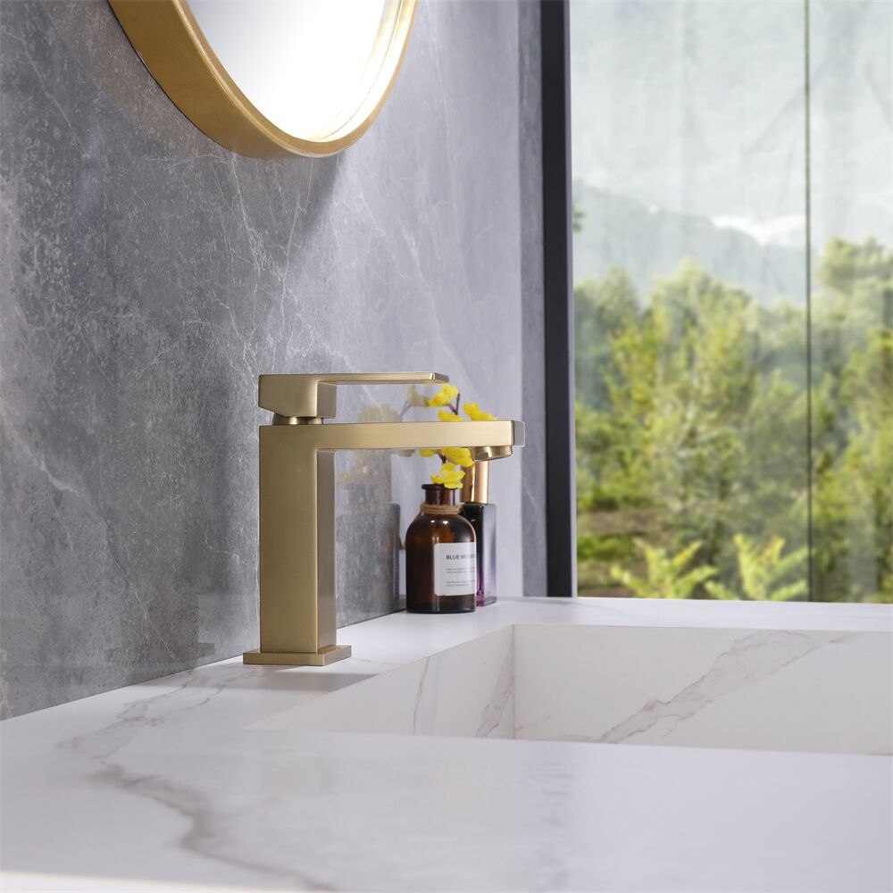 Deck Mounted Single Hole Hot Cold Water Supply Brushed Gold Finish Brass Single Handle Basin Tap