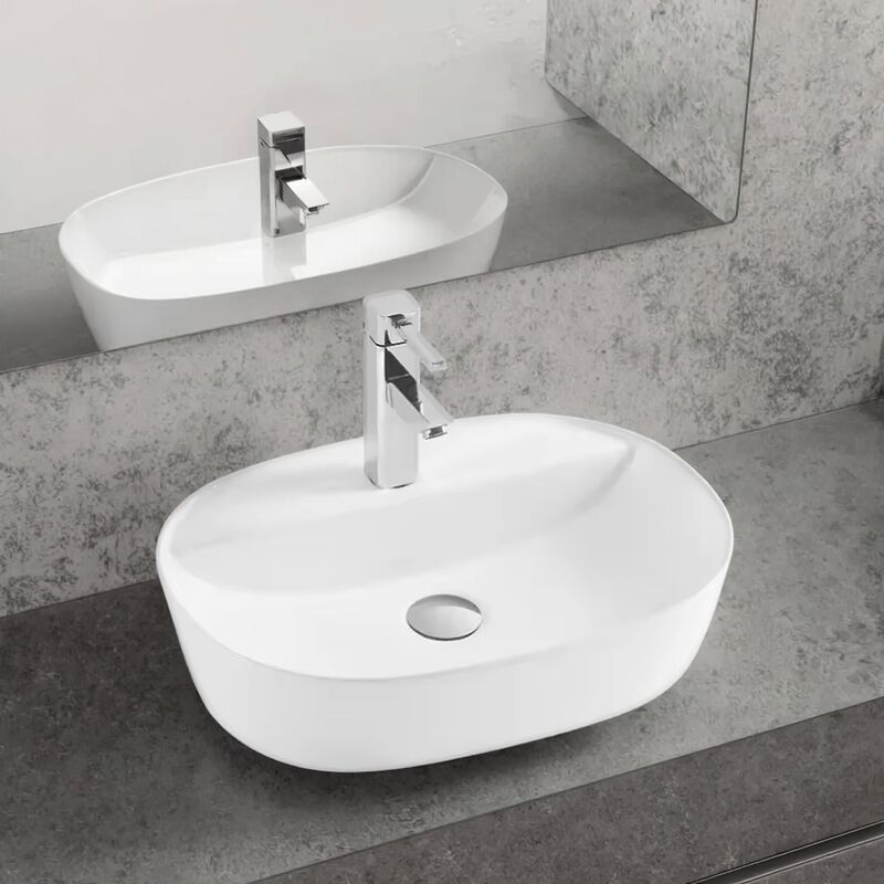 Durable Modern Nice Quality Ceramic Counter Basin White Oval Bathroom One Hole Sinks for Household