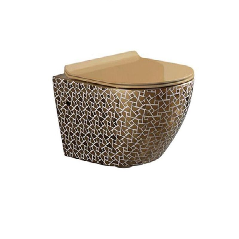Inodoro suspendido en la pared de Color dorado de lujo, inodoro con patrón de cocodrilo plateado montado en la pared
