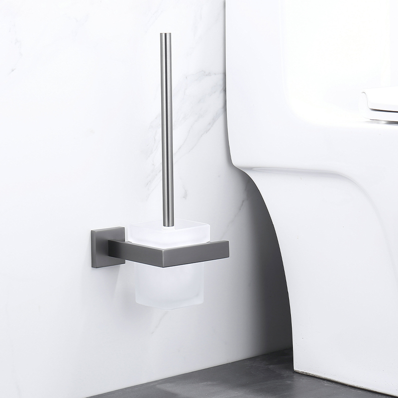 Modern Stainless Steel Toilet Bowl Attachment Cleaning Set Hotel Application Brush Holder and Metal Cup Satin Finish