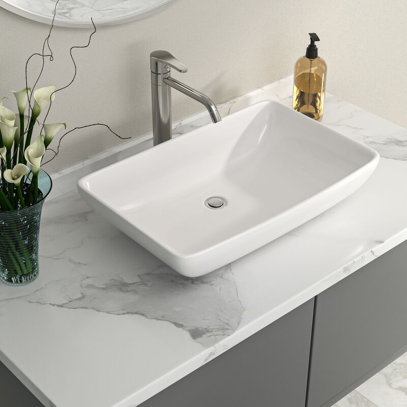 Rectangular Bathroom Boat Shape Sink White Rectangle Above Counter Countertop Porcelain Top Ceramic Vanity Sink