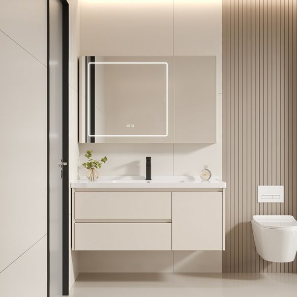 Wall Mounted Ceramic Basin Vanity Furniture Plywood Bathroom Cabinet With Mirror