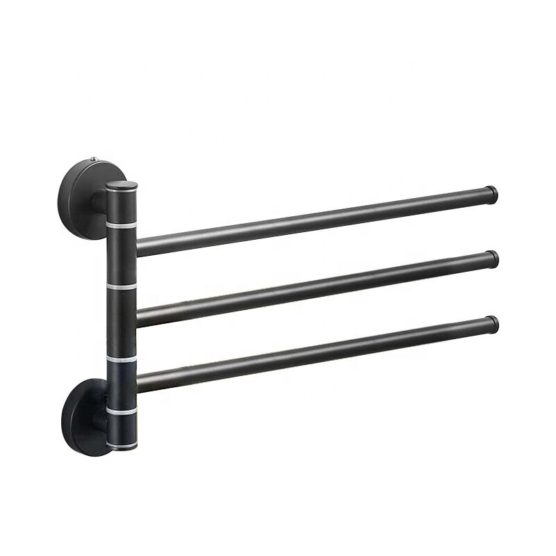 Factory Price Movable Bathroom Towel Rack Set 304 Stainless Steel Black Sliding 3 Tier Towel Rack