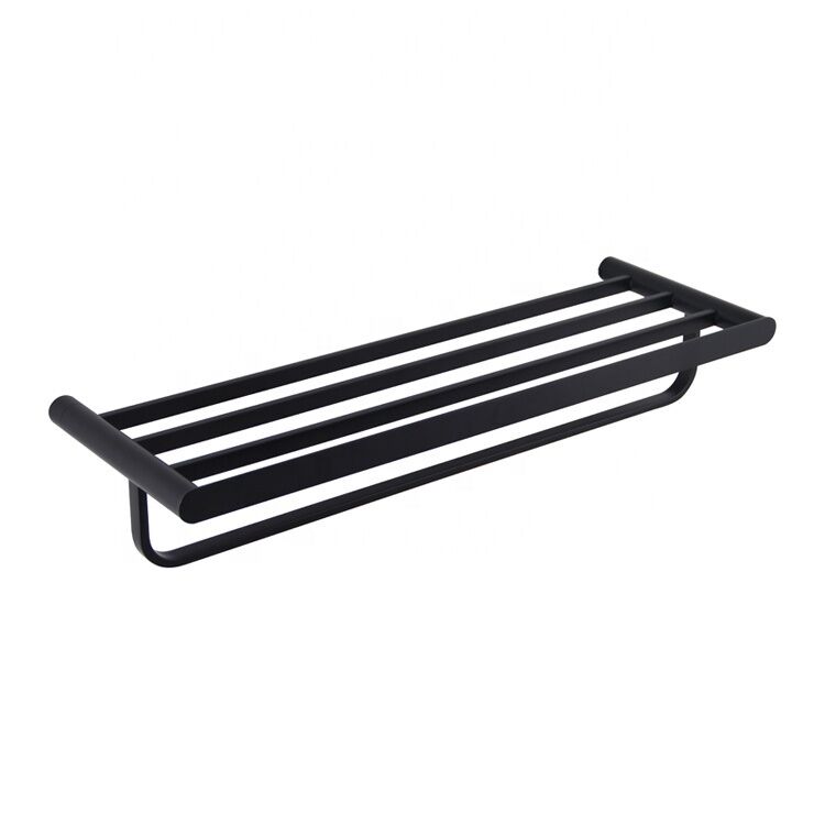Factory Supply Apartment Hotel Matt Black 304 Stainless Steel Wall Mounted 2-layer Double Towel Rack Holder Bathroom Towel Rail