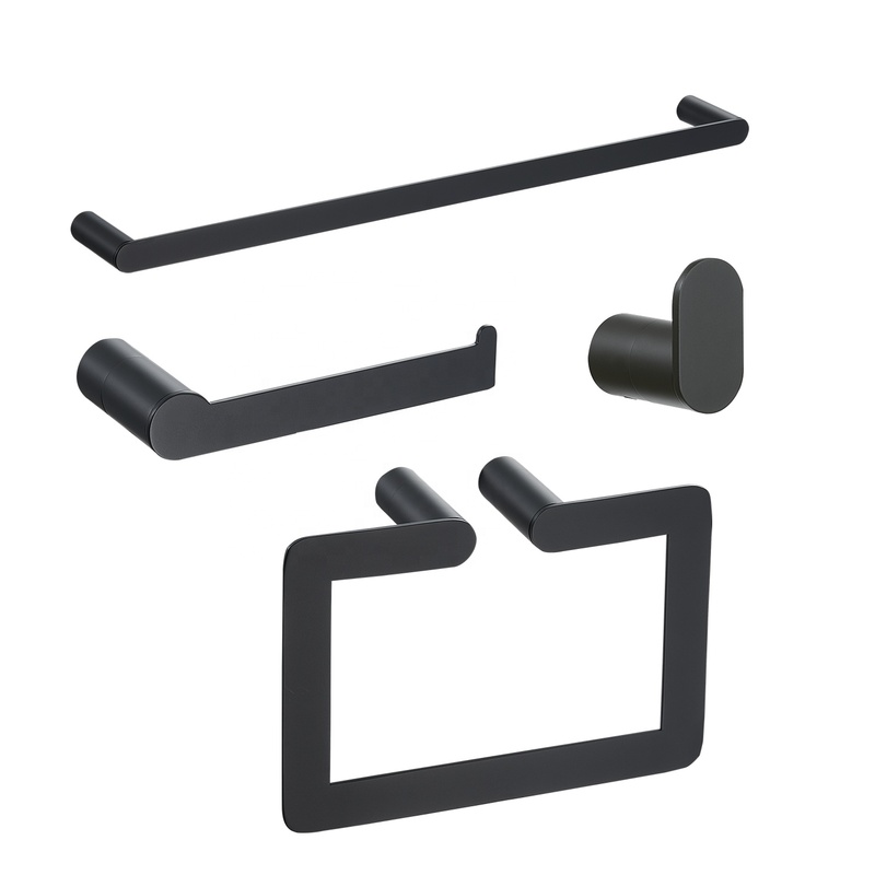 4 Pieces European Style Matte Black Wall Mount Bathroom Hardware Accessories Toilet Paper Holder and Towel Bar Sets