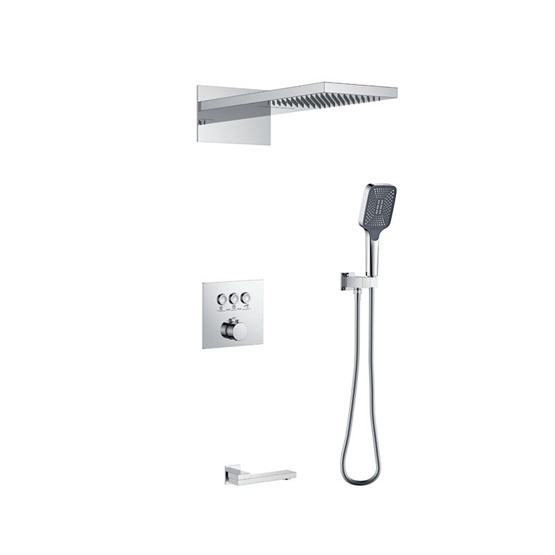 Ensemble de douche encastré à 4 voies en laiton de style contemporain de 12 pouces