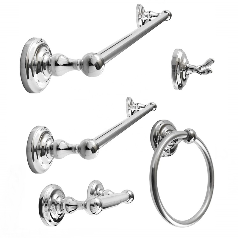 5-Piece 24″ Towel Bar Modern Wall Mounted Chrome Bathroom Hardware Accessories Set