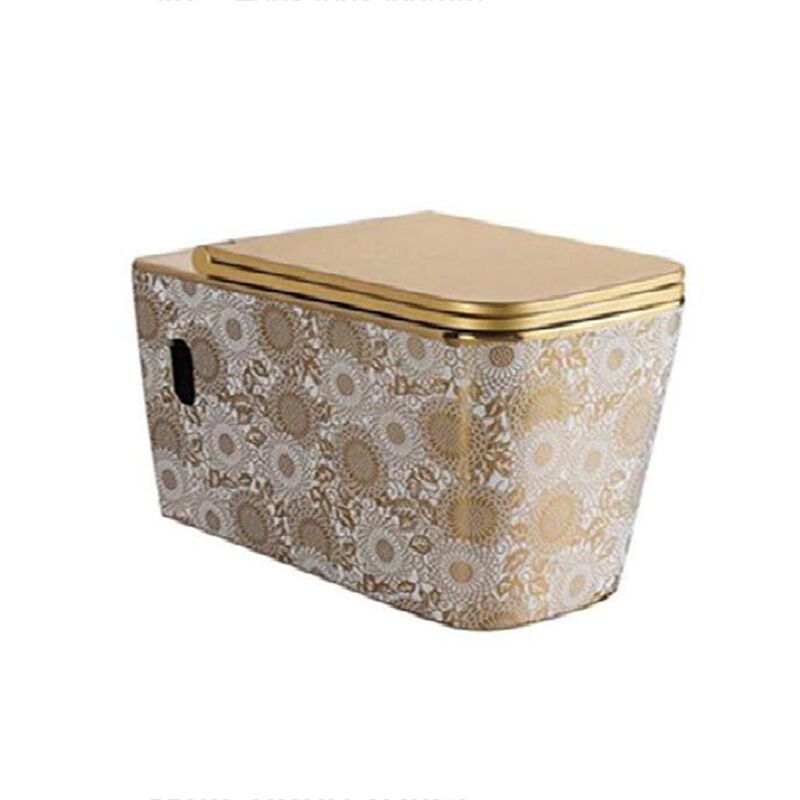 Toilettes de salle de bains galvanisées de Style de luxe, toilettes suspendues murales en céramique de grande taille, noir, blanc, or Rose