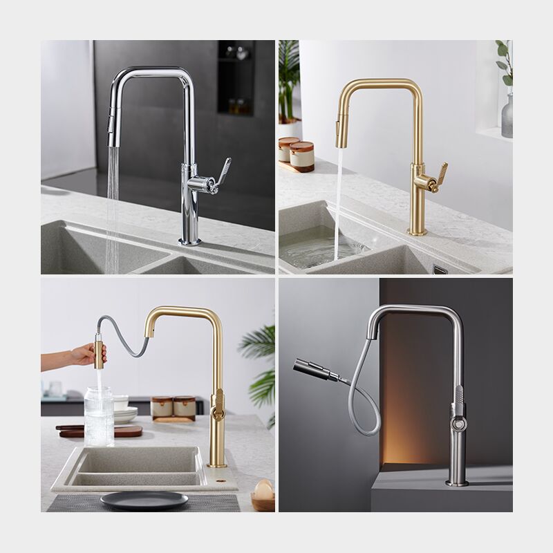 | Fonctionnalité | Bec pivotant à 360 degrés Contrôle de l'eau et de la température à levier unique La plaque de pont est disponible pour une installation à 1, 2, 3 ou 4 trous Le tuyau rétractable en nylon tressé s'étend jusqu'à 25 pouces Le tuyau rétractable auto-rétractable maintient la tête de pulvérisation ancrée et sécurisée lorsqu'elle n'est pas utilisée. Pression de l'eau testée selon les normes de l'industrie Le robinet à poignée unique se déplace de 90 degrés vers l'avant pour s'adapter aux espaces restreints La finition haut de gamme résiste à la rouille, à la corrosion et au ternissement Le robinet de cuisine à double fonction offre un débit aéré ou un jet puissant. Construction en laiton massif avec finition or brossé mat Tout le matériel de montage et les conduites d'eau chaude/froide sont inclus Mesures du robinet Portée du bec : 9 ¼" Hauteur du robinet : 18″ Connexions standard de ⅜" pour la plomberie américaine |