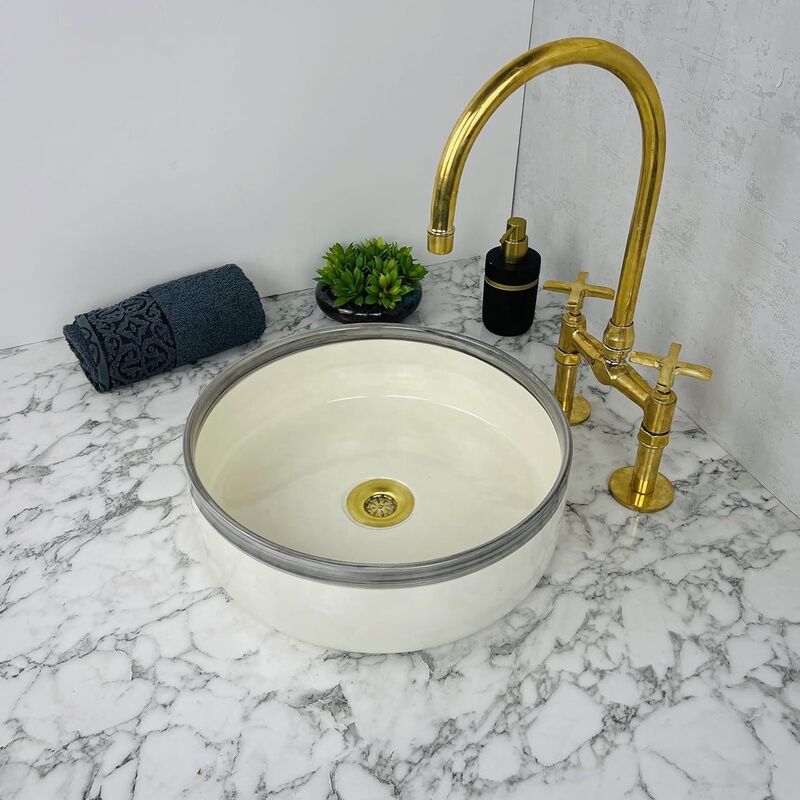 Lavabos ronds en porcelaine blanche à bordure grise, petit modèle, sur mesure.