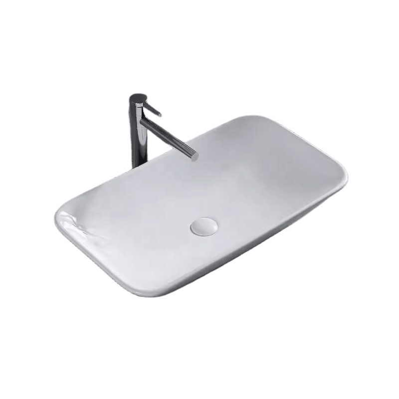 Modern Style Rectangular Ceramic Basin Vessel Sink Slim Counter Hand Washing Bowl for Bathroom