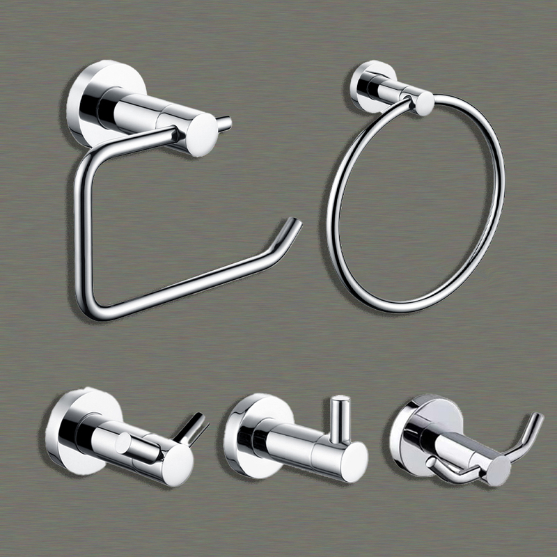 Wall Mounted Bathroom Robe Hooks Chrome 304 Stainless Steel Heavy Duty Single Robe 5 Pieces