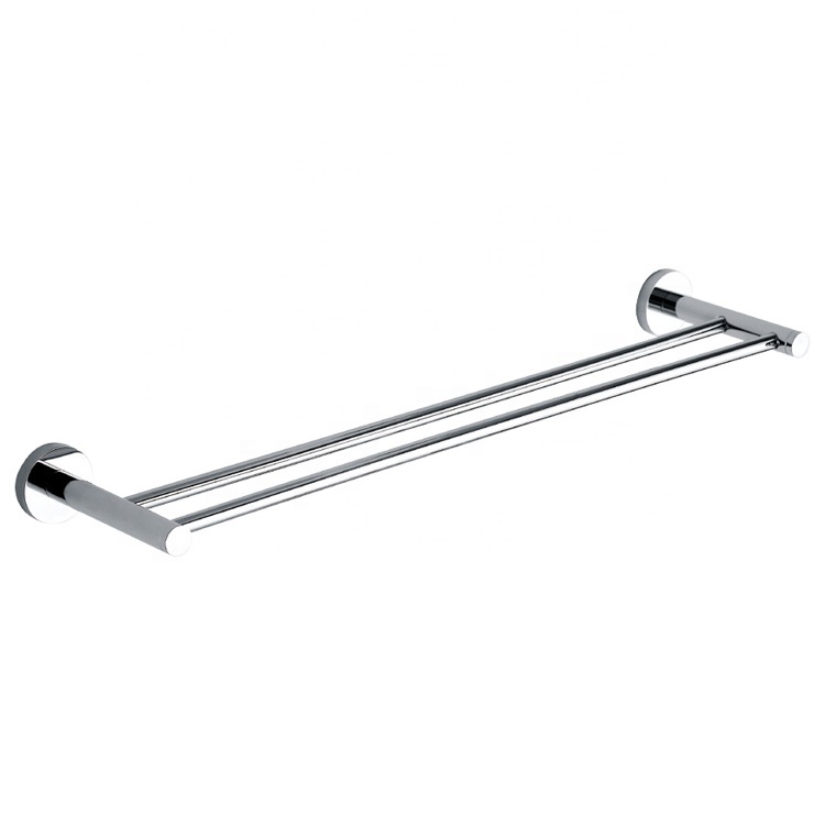 Wholesale Chrome Bathroom Hotel 304 Stainless Steel Round Double Towel Rack Wall Mounted Towel Bar Towel Shelf