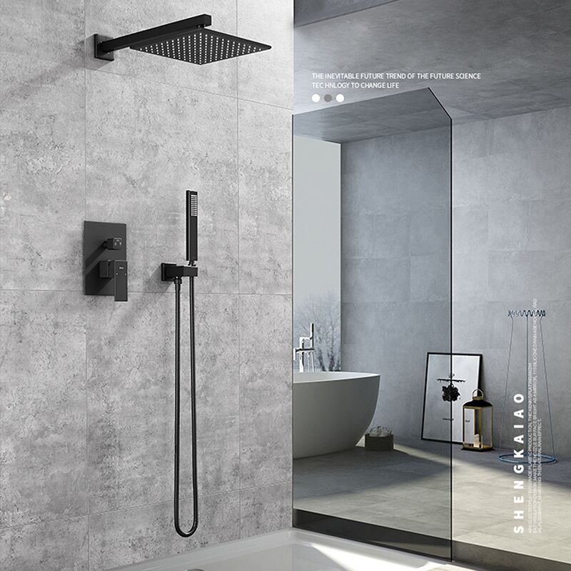 Brushed nickle gold bathroom shower hot and cold shower mixer in wall mounted rain concealed shower set