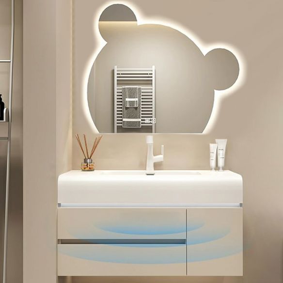 High Quality Modern Luxury Wall Mounted Wooden Led Lighted Bathroom Cabinet