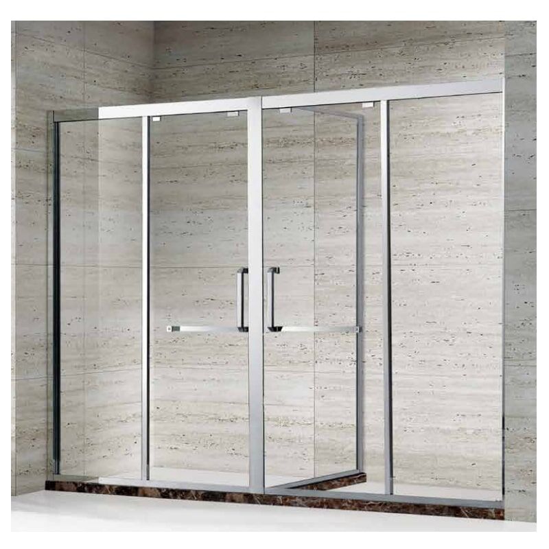Shower glass door is mainly composed of door frame, door leaf, transmission parts, tumbler parts, transmission rod,shower door directional device and so on.The type can be installed indoors.Each glass shower door has two doors or single doors.The border on one side of the side door leaf is connected with the middle door leaf by hinges. Shower Door offers a wide variety of sliding shower doors. and swing shower door is also avilable. Each style has its own unique applications and may be configured with towel bars, handles, knobs or finger pulls