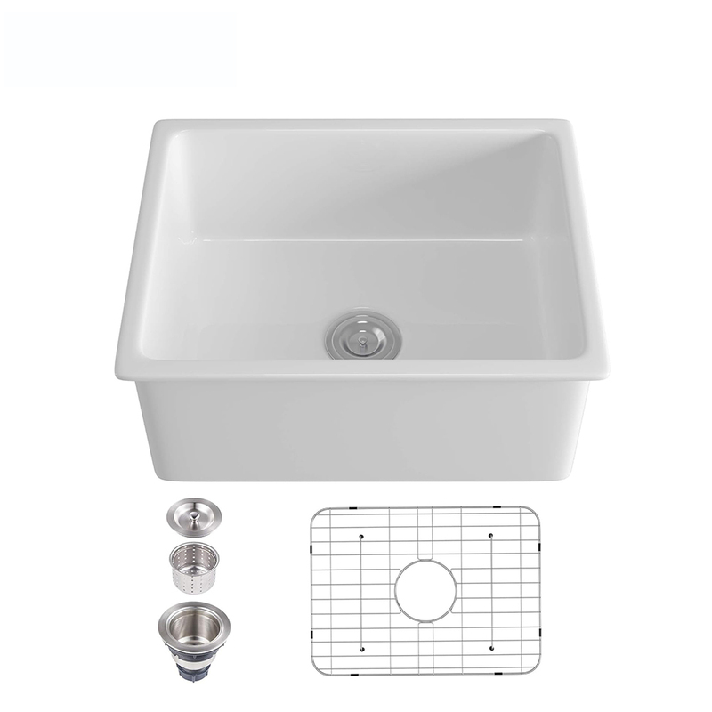 High Resistant Scratch Fireclay Kitchen Sink Undermount Single Bowl Quartz Sink with Accessories