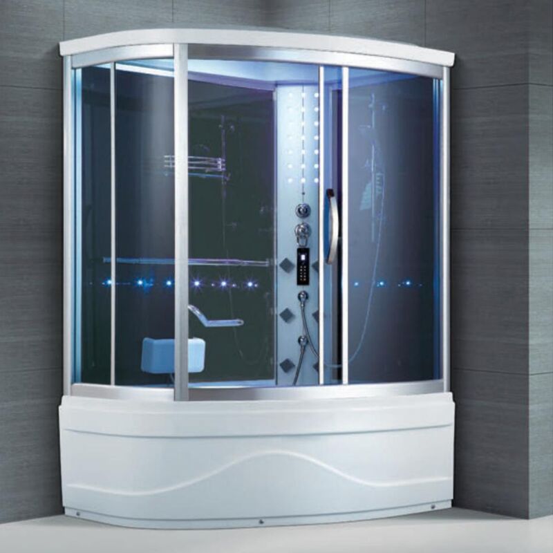 | Main Devices | LCDmSteam bath: 4.5kw Radio,External AUX input interface, Temperature indication/adjustment Time indication/adjustment Exhuast fan,Illuminating lamp,Backplane colorful lights Background Light,Back acupuncture massage Water pressure massage Foot Massage Top shower,Movable shower,Functional changeover, ColdHot Water Control Switch Overflow protection Single rack Mirror,Telecontroller,Disinfect automatically after shut down(Optional) |