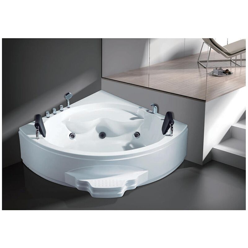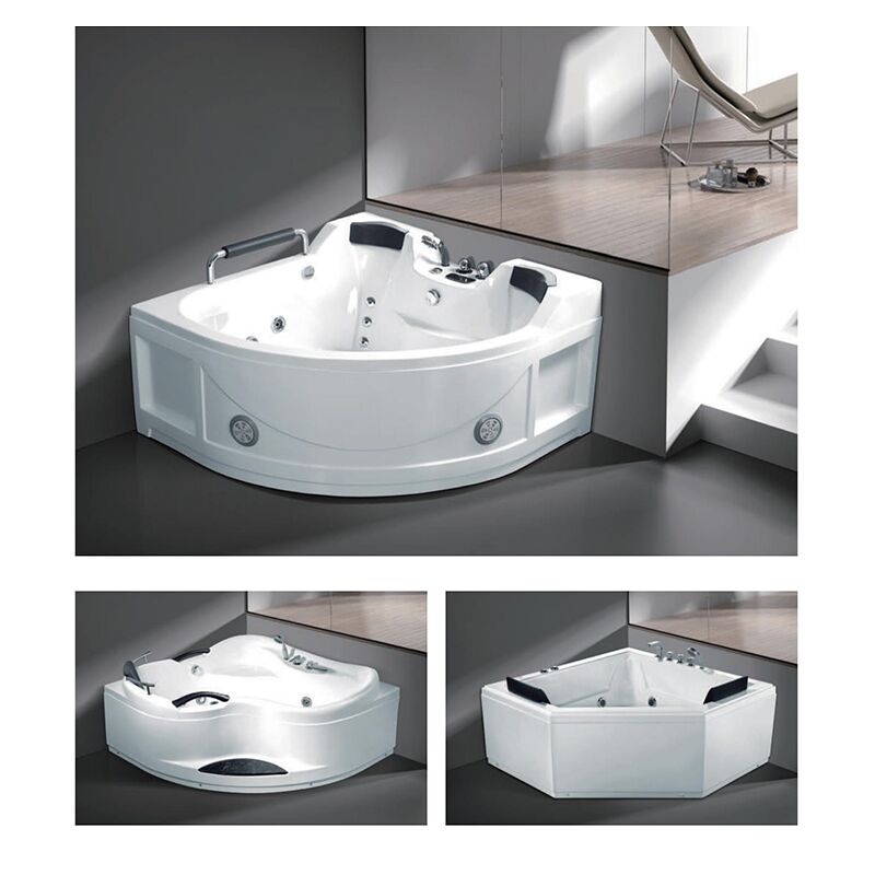 2 Person Acrylic Bathtub Triangle Freestanding Soaking Adult Bath Tub Corner Whirlpool Massage Bathtub