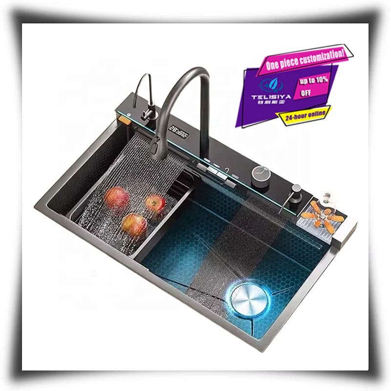 Kitchen Sink with Control Temperature Digital Display Piano Key Faucet Panel for Hotel