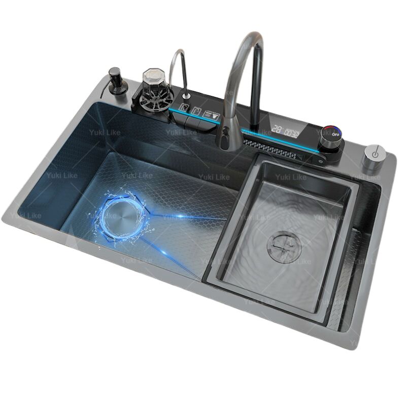 Luxury Black Digital Display Multifunctional 304 Stainless-steel Kitchen Sink Pull-out Waterfall Faucet for Hotel Kitchen