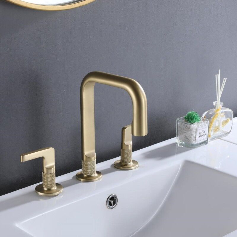 Luxury Knurled Faucet Bathroom Mixer Tap Brushed Gold Wash Basin Faucet Deck Mounted Brass 3 Holes Lavatory Vanity Faucet