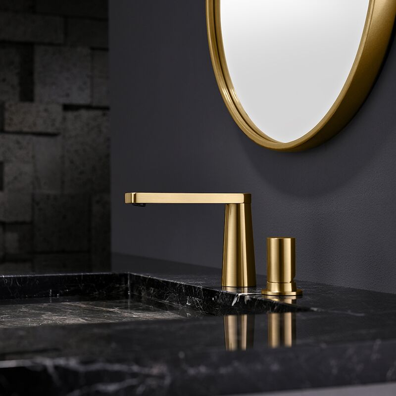 Luxury Wash Basin Faucet Deck Mounted Dual Holes Vanity Faucet Dual Holes Brushed Gold Brass Bathroom Sink Faucet